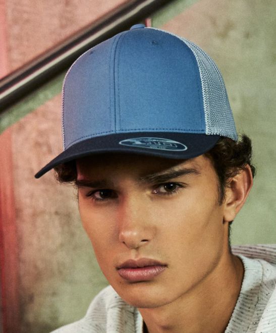 6 Panel Trucker Kappe Leicht vorgebogener Schirm, 6 Ziernähte am Schild, Snap-Verschluss, nicht waschen, nicht bügeln, nicht trocknergeeignet, nicht chemisch reinigen Größen: onesize Oberstoff: 100% Baumwolle, Oberstoff 2: 95% Polyester, 5% Elasthan, black/black: 97% Polyester, 3% Elasthan