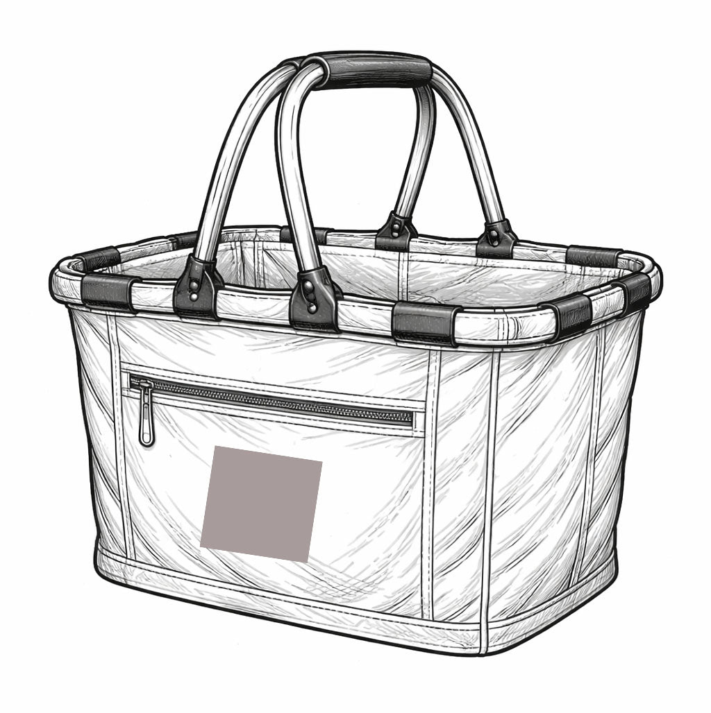 formschöner Einkaufskorb mit Alurahmen und Reißverschluss-Vortasche; faltbar
