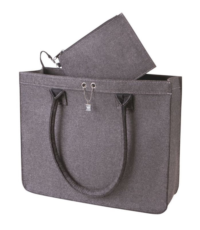 hochwertiger Filzshopper; innen abnehmbare, flache Wertsachen- Reißverschusstasche