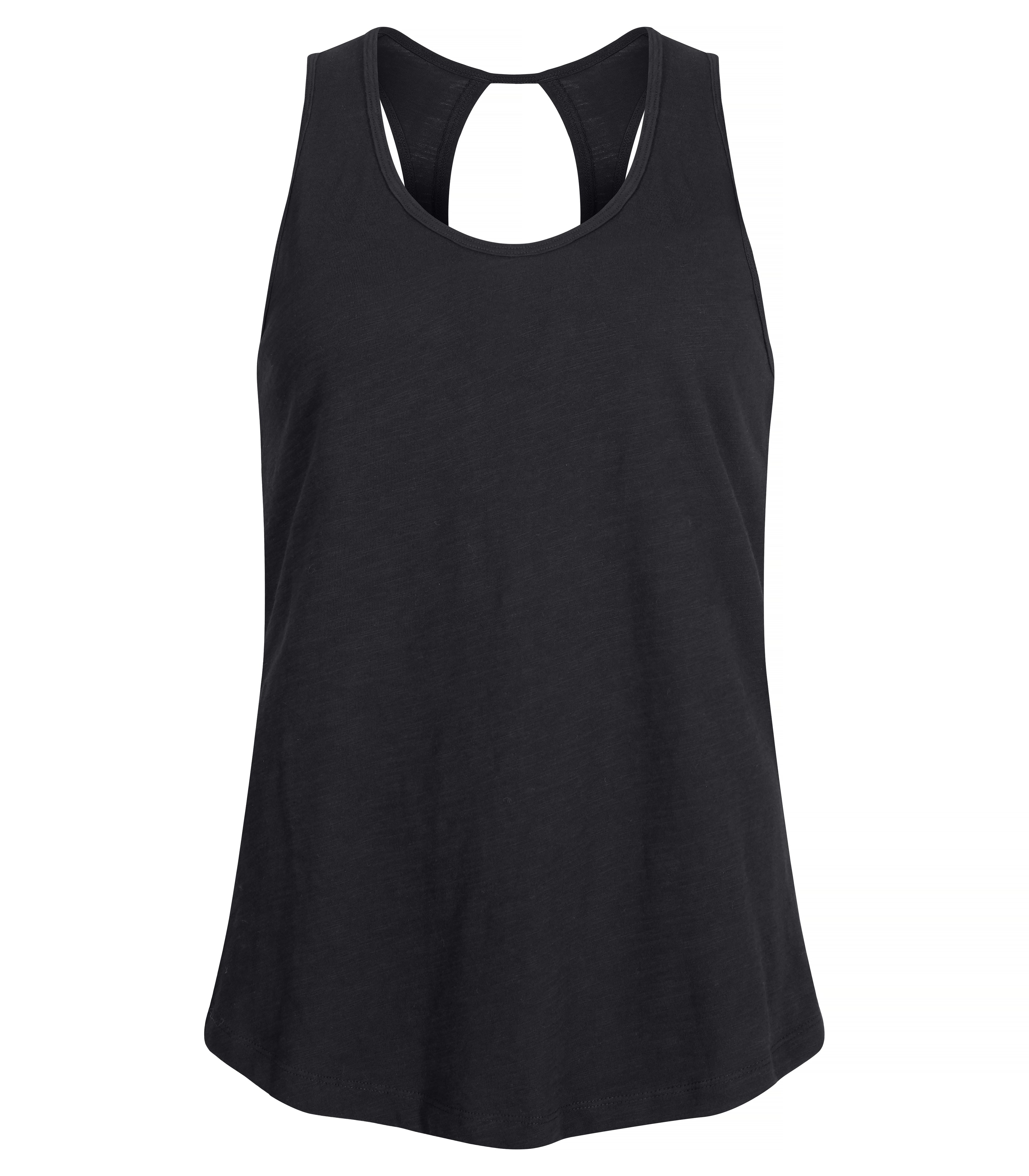 Modern geschnittenes Shirt aus 100% Baumwolle (Slub Ring-Spun Jersey). Mit Seitennähten und großem Rückenausschnitt für einen modischen Look.