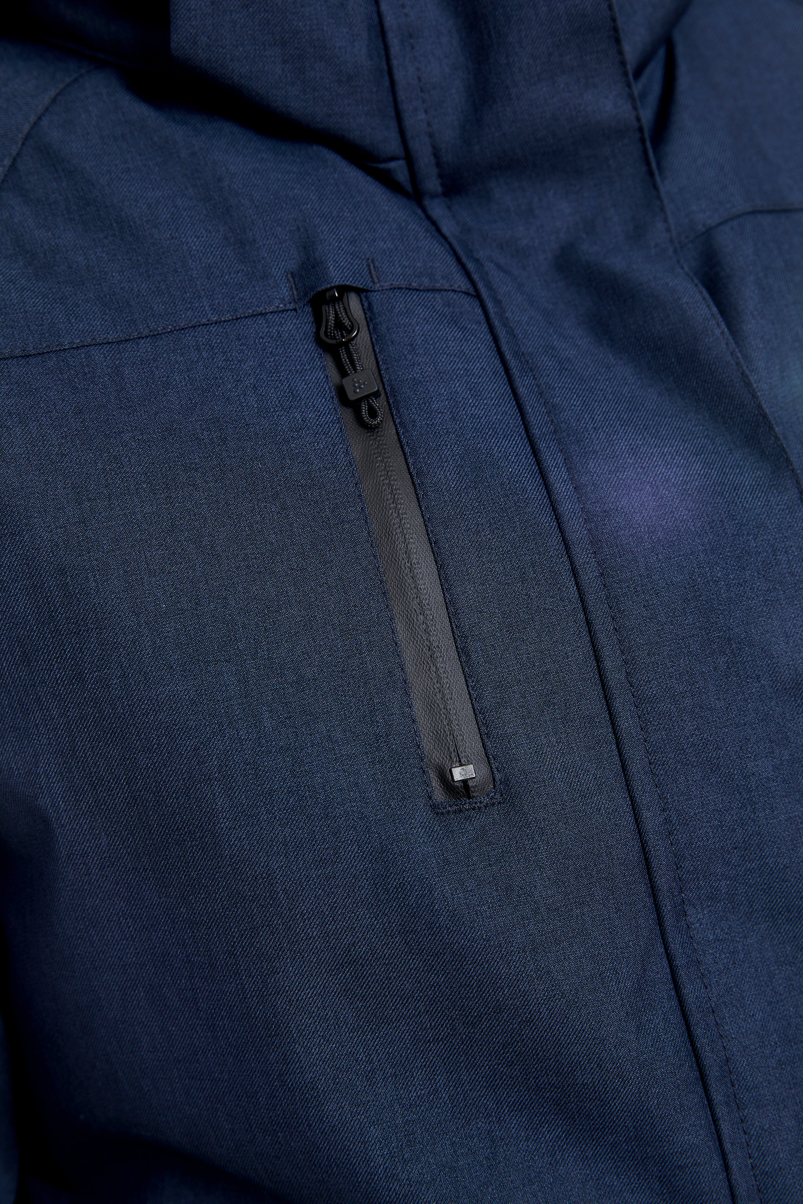 Moderne, wattierte Jacke mit hohem Kragen, abnehmbarer Kapuze und Schneefang im Bund.
