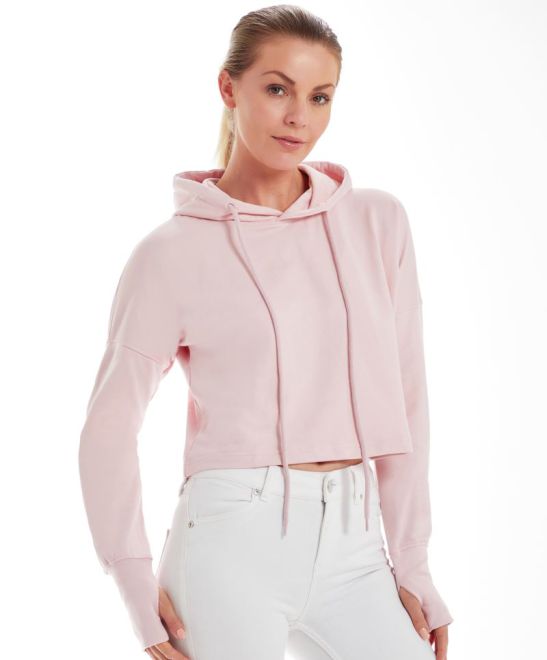Kurz geschnitten, legerer Schnitt, 3-teilige Kapuze, überschnittene Schultern, extra lange Rippstrickbündchen mit Daumenloch, extra lange Zugkordel, TearAway Label, 40° waschbar, nicht trocknergeeignet, nicht chemisch reinigen
