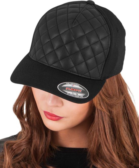 Gesteppte Front aus Kunstleder, Aufkleber auf dem Schirm, vorgeformter Schirm, 8 Ziernähte am Schild, silberne Schirmunterseite, Frontpanel verstärkt, 4 gestickte Luftlöcher, Flexfit® Technologie ohne Verschluss, Größe S/M=54-58cm, Größe L/XL = 57-61cm, Größe Youth = 52-56cm, nicht waschen, nicht bügeln, nicht trocknergeeignet, nicht chemisch reinigen
