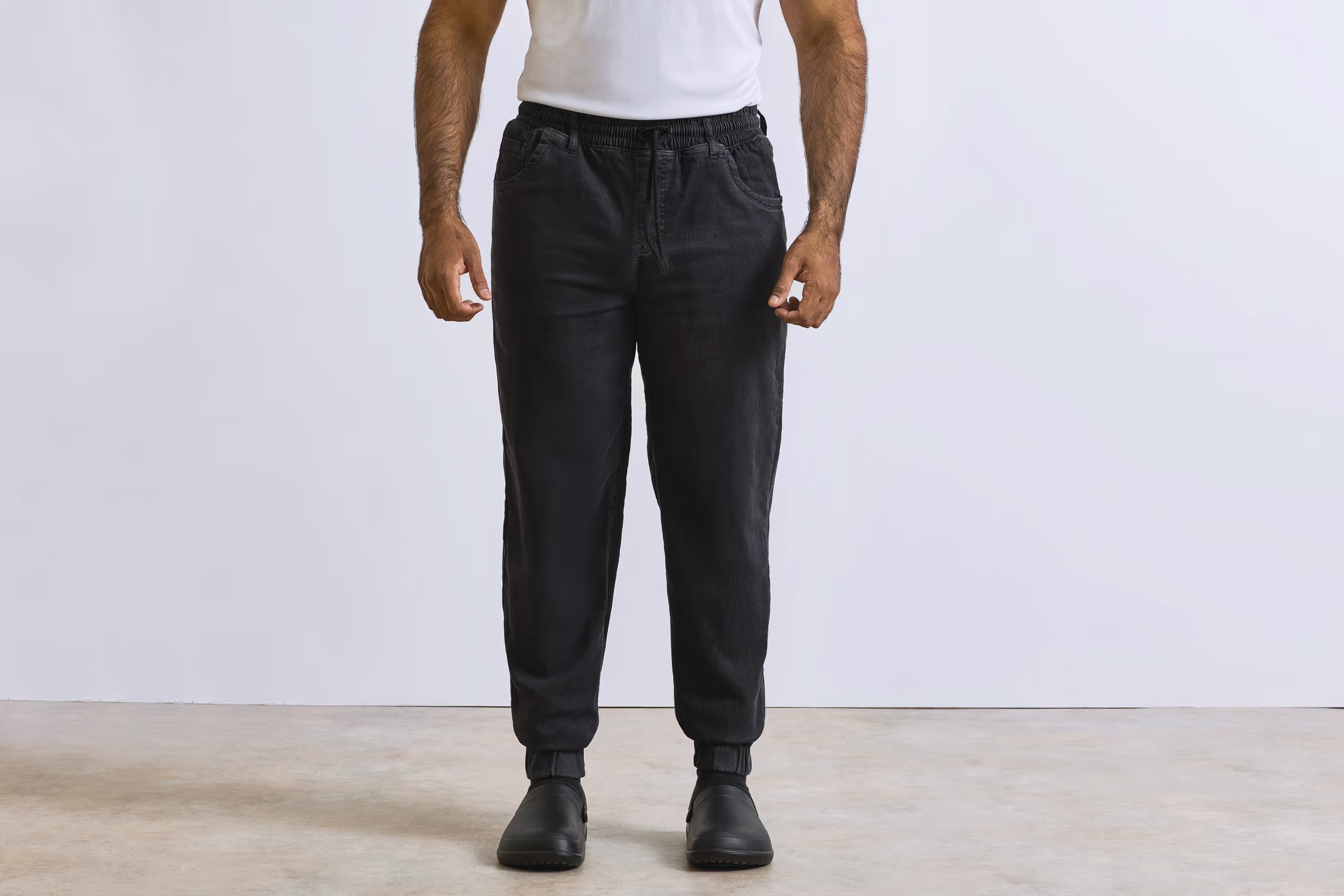 Die Kochhose Artisan kombiniert modernen Komfort mit praktischer Funktionalität für den Profi-Einsatz. Das hochwertige Materialgemisch aus 87 % Baumwolle, 22 % Polyester und 1 % Elasthan bietet optimale Beweglichkeit und Langlebigkeit. Das lockere Jogginghosen-Design mit elastischen Bündchen an Knöcheln und Taille ermöglicht ganztägigen Tragekomfort ohne Einschränkungen. Der Kordelzug in der Taille garantiert individuelle Passform. Die angedeutete Hosenschlitznaht verleiht dem Design subtile Eleganz. Praktische Seitentaschen und zwei aufgesetzte Gesäßtaschen bieten ausreichend Stauraum für notwendiges Zubehör. Bei einer Beinlänge von 82 cm und der weichen Textur ist diese Hose ideal für lange Schichten in der Küche.