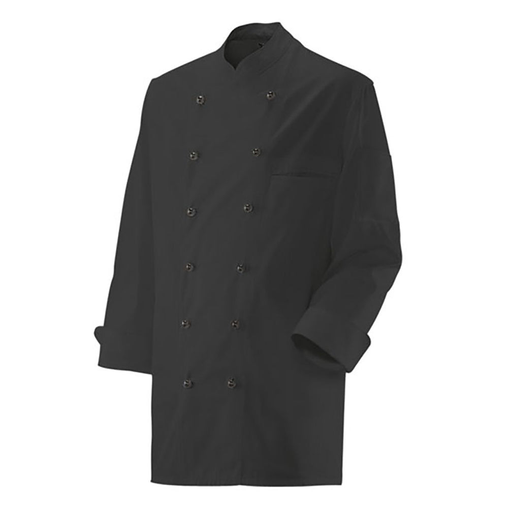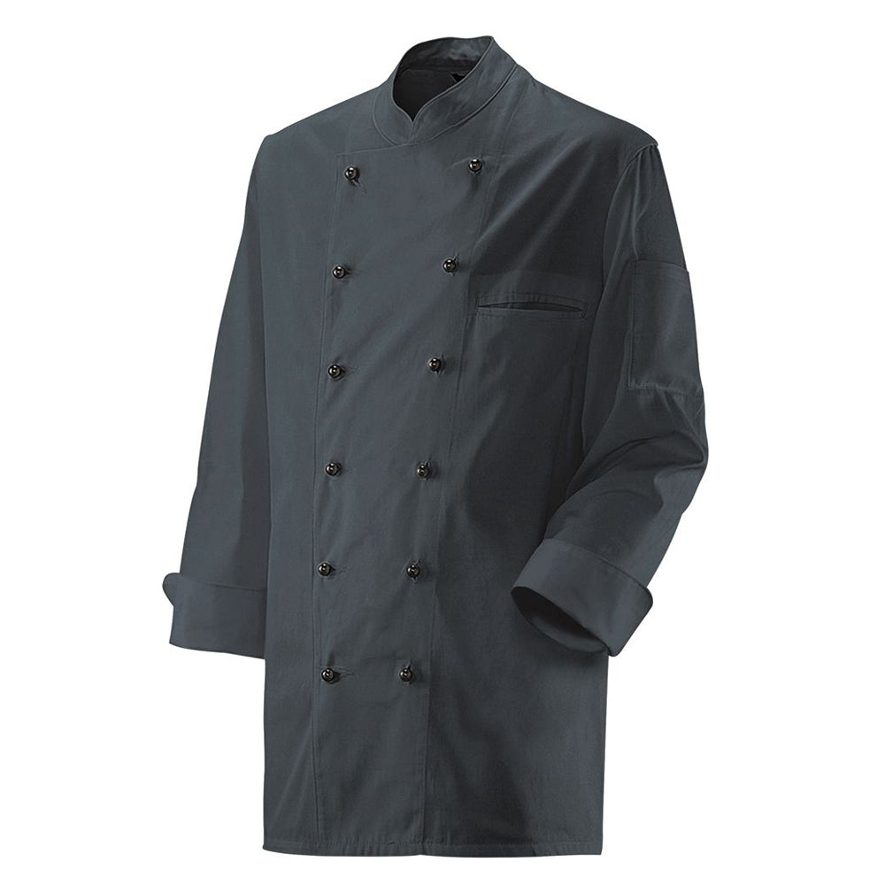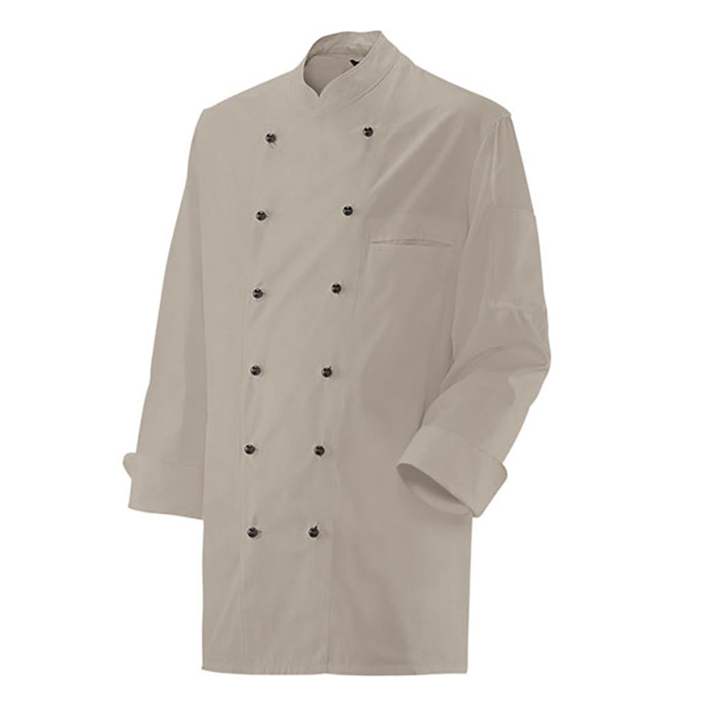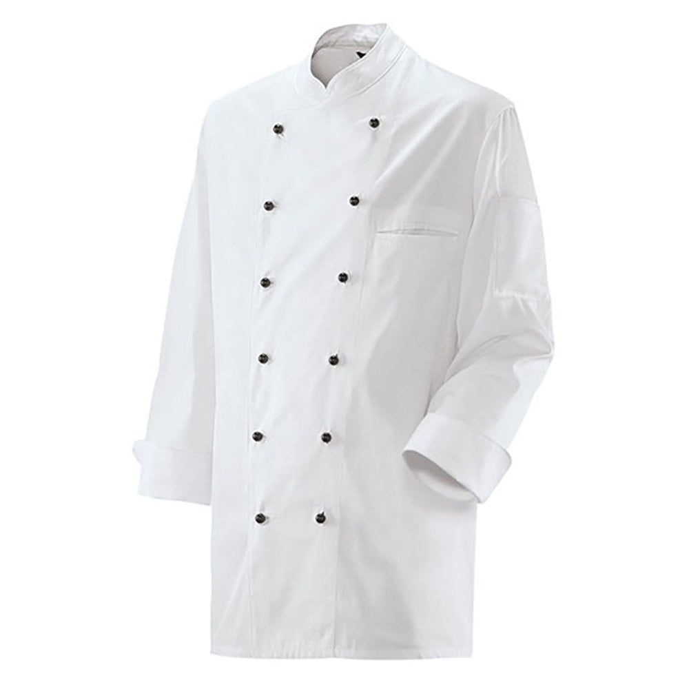 Professionelle Kochjacke in klassischem Weiß mit durchdachtem Design für den Kücheneinsatz. Die langärmelige Jacke bietet zuverlässigen Schutz in anspruchsvollen Arbeitsbereichen. Mit ihrer 2-reihigen 6-Loch-Knopfreihe lässt sich die Passform individuell anpassen. Die Trapezform ermöglicht freie Bewegungen beim Arbeiten, während der Stehkragen einen zeitlosen Look verleiht. Die Ärmel mit doppeltem Umschlag bieten flexible Trageoptionen. Das strapazierfähige Material aus 65 % Polyester und 35 % Baumwolle (ca. 220 g/m²) ist unisex geschnitten und pflegeleicht bis 75 °C waschbar.