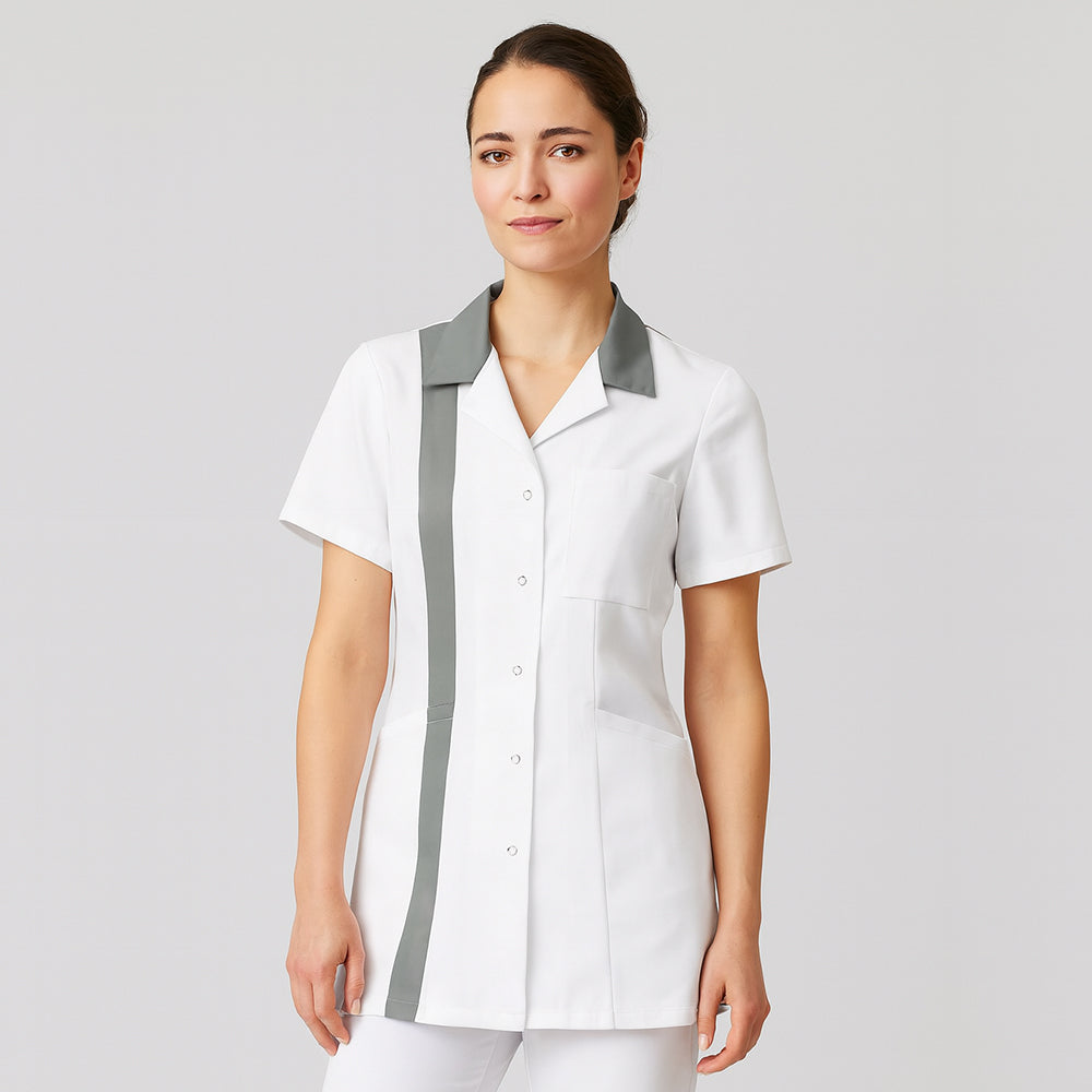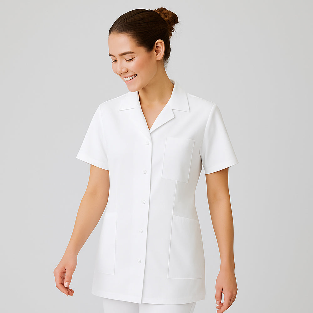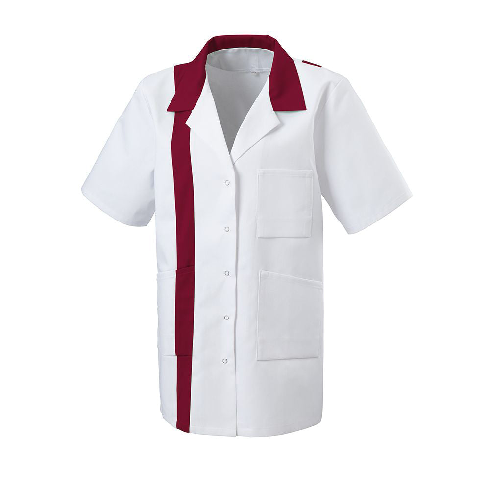 Dieser Kittel mit Reverskragen vereint Funktionalität und zeitlose Eleganz für den professionellen Einsatz. Die Viertelärmel bieten optimale Bewegungsfreiheit und angenehme Luftzirkulation, während der klassische Reverskragen einen gepflegten Look garantiert. Das robuste Mischgewebe aus 50% Polyester und 50% Baumwolle (210 g/m²) überzeugt durch Strapazierfähigkeit und pflegeleichte Handhabung – auch unter anspruchsvollen Bedingungen. Die ergonomische Schnittführung mit idealer Rückenlänge sorgt für optimalen Tragekomfort und sichere Abdeckung. Praktische Details wie die Druckknopfleiste für schnelles An- und Ausziehen, eine Brusttasche und zwei geräumige Seitentaschen runden das durchdachte Design ab. Hochwertige Verarbeitung garantiert langfristige Formstabilität und Haltbarkeit.