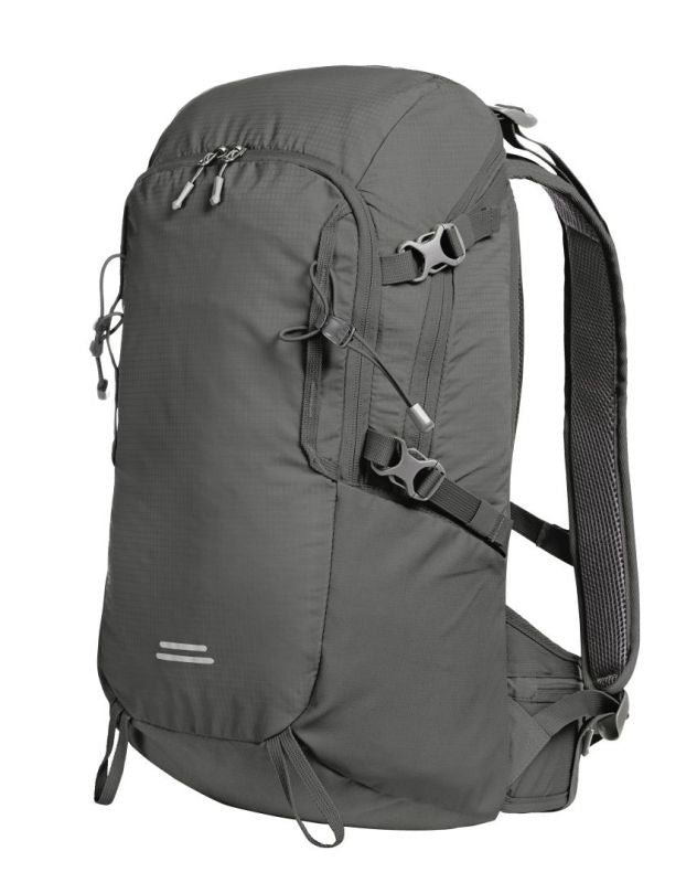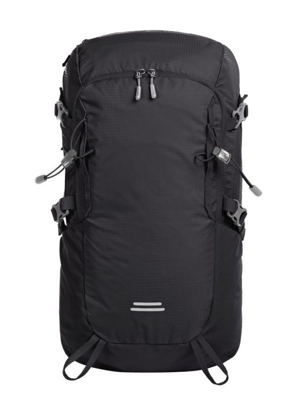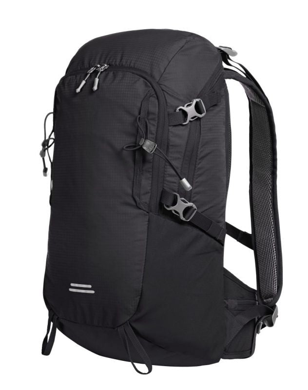 Leichter, funktioneller Rucksack mit ergonomisch geformtem Rücken und innovativem Wabensystem für ideale Belüftung und Polsterung, oben wie unten höhenverstellbar für eine perfekte Passform; höhenverstellbarer Brustgurt; gepolsterter Beckengurt mit Reißverschlusstaschen; großes 2-Wege-Reißverschluss-Hauptfach mit flachem Einsteckfach innen; rückseitiger Ausgang geeignet für z.B. Kopfhörer oder Schlauch des zusätzlich lieferbarem Trinksystems ,Klettloop zur Fixierung des Trinkschlauches; 2 Reißverschluss vortaschen; 2 Netz-Seitentaschen; seitliche Zurrgurte; funktionales Schlaufenband auf der Fronttasche; dekorativer Reflex-Aufdruck; Wanderstockfixierungen; Bodenfach mit