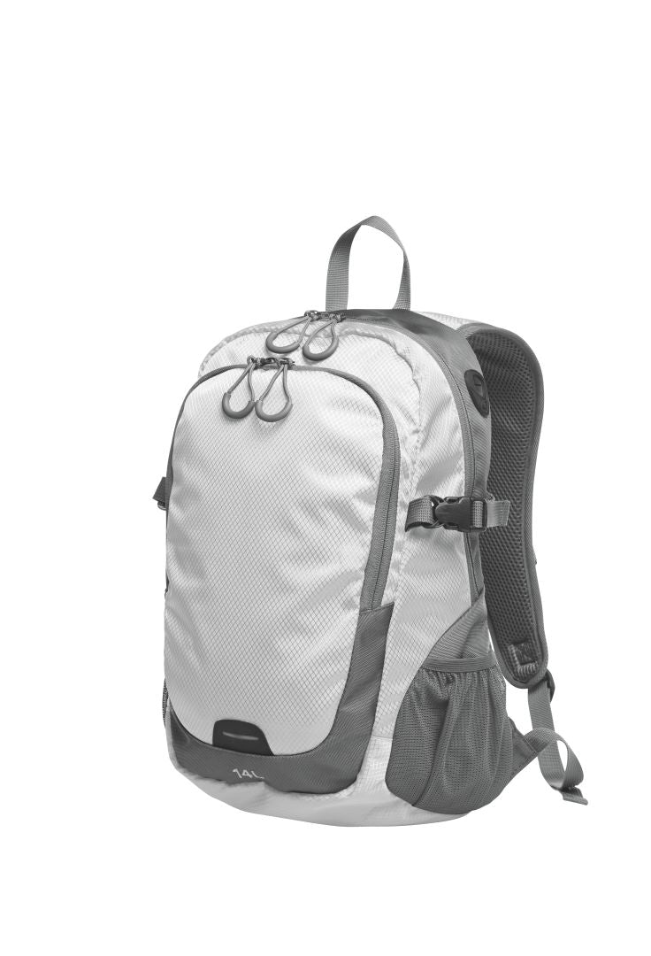 Geräumiges Hauptfach mit 2-Wege-Reißverschluss und Einsteckfach innen; seitliche Zurrgurte; Reißverschluss-Vortasche mit zwei Einsteckfächern; Reflektor-Streifen vorne; seitliche Netzfächer; Kopfhörerausgang; gepolsterte Schultergurte mit höhenverstellbarem, dehnbarem Brustgurt; gepolsterter Rücken