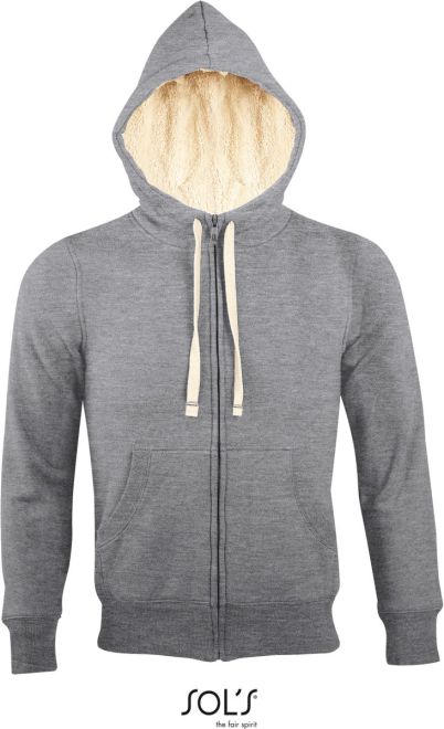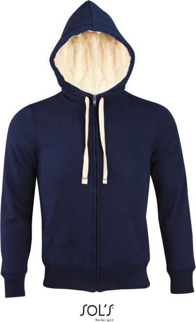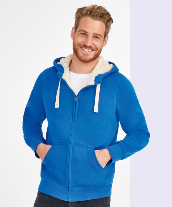 280g/m², 80% ringgesponnene Baumwolle, 20% Polyester, Kapuze und Körper mit Sherpafleece gefüttert