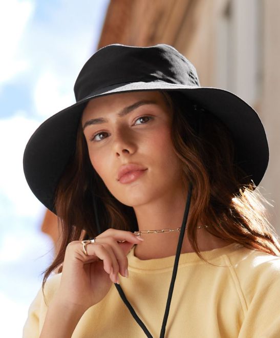 Dieser Damensonnenhut bietet umfassenden UV-Schutz mit UPF 50+ und schützt Gesicht sowie Nacken zuverlässig vor Sonnenstrahlung. Die großzügige, schräg geschnittene Krempe sorgt für optimale Abdeckung, während das wasserabweisende Material aus 100% recyceltem Nylon Beständigkeit gegen Spritzwasser gewährleistet. Das verstellbare Kinnband ermöglicht sichere Passform bei Wind und Aktivitäten. Das praktische TearAway-Label bietet Tragekomfort ohne störende Etiketten. Pflegeleicht – einfach mit einem feuchten Schwamm reinigen. Erhältlich in Universalgröße.